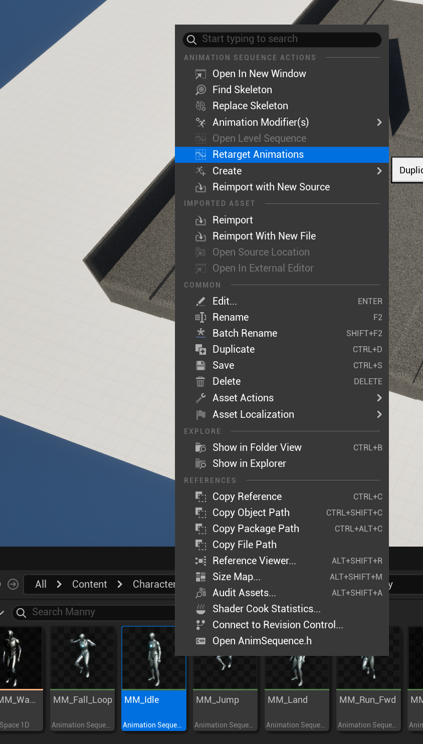 - UE4와 UE5의 마네킹 간 애니메이션을 공유할 때