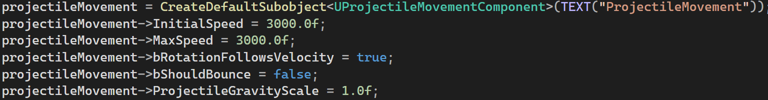 프로젝타일 무브먼트 컴포넌트를 선언해주고